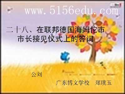 标题: 《在联邦德国海姆佗市市长接见仪式上的答词》ppt课件2