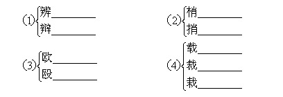 3.(1)辨别辩论 (2)树梢 捎带 (3)欧洲 殴打 (4)记载 裁衣 栽培