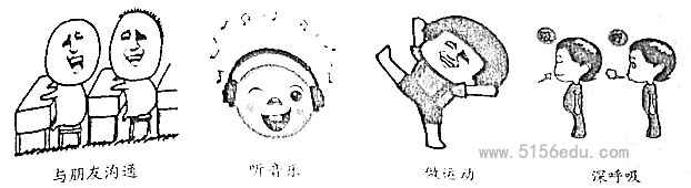(2)本题考查提出建议的能力。针对某种情况提出建议,所提建议一定要有可行性,不能是空洞的口号,要有针对性,这个针对性既指要确定需解决的问题,也指提出建议的对象。作答本题,可分别向家长、学校和学生自己提出不同的具体建议。家长方面要学习掌握与孩子沟通的技巧和方法;学校要开设与情绪管理有关的课程;学生要善于管理自己的情绪,掌握宣泄情绪的方法,如听音乐、做运动、深呼吸等。