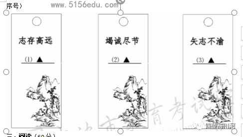 【任务二】请你将【任务一】中的三则材料作为书签内容,填在相应词语下方的横线上。(填序号)