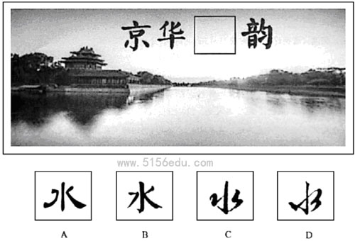 1.同学们准备从书法作品中搜集单字组成展板标题,对于“水”字的选择产生了争议。请你依据“字体一致,和谐美观”的原则,选择最恰当的一项。(2分)