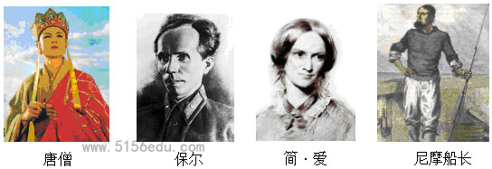 【分析】本题考查名著人物与情节的识记能力。解答此题从四个备选人物中选择自己最为熟悉的一个,抓住人物最突出的性格特点或是某种精神,表述出推荐的理由即可。比如,唐僧,可从他信念坚定,并能坚持不懈地去实现目标来表述其可贵之处;保尔可从他的自我牺牲精神,顽强坚韧的意志来表述推荐的理由。答案不唯一,符合名著人物性格特点即可。
