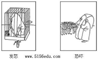 【分析】本题考查对漫画主题的理解。作答时,首先要仔细观察画面内容,然后理解其内涵。如漫画《发怒》中,发怒的人用拳头表达愤怒,拳头却被困在笼中,阻隔了自己与外界的沟通,事情没有得到任何解决。这就告诉我们,光是发怒,不冷静思考解决办法,是没有任何帮助的。又如漫画《恐吓》中,一个人用巨大的面具遮挡真实的自己去恐吓人群,这就告诉我们不要惧怕恐吓,吓人的外表往往是色厉内荏的人装出来吓众人的。