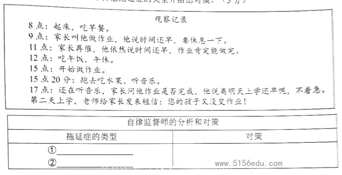 21、下面是一位学生拖延症患者某个周日的观察记录,假如你是一位自律监督师,请据材料二和材料三分析他拖延症的类型并给出对策。(5分)