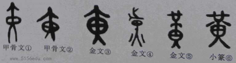 辽宁牛梁河遗址近日出土了一位手握双龟的老人的遗骨,有专家称是黄帝的遗骨,证据之一是黄帝之“黄”在甲骨文中即是乌龟的形状,而据说黄帝部落的图腾就是神龟。这真是无知者无畏。我们且来看一看“黄”字的原始字形及其演变。黄,甲骨文字形①,这是一个象形字,至于像什么则众说纷纭。有人说像一支射出去的着火的箭,由火光而联想为黄色之意。有人说箭射中了靶心,靶心为了醒目起见,用赤褐色的泥浆涂抹,因而引申为黄色之意。