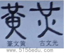 篆文黄虽然由“田”字和古文“光”组合而成,但是光不等于火,所以许慎田被烧后土色变黄之说可能错了。古文“光”从火,火上是声符。“光”有大的意思。篆文黄从古文“光”,所以取得壮伟肥大之义,亦不足怪。                                   (整理自流沙河《白鱼解字》