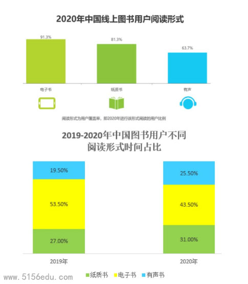 A. 从阅读形式看,用户比例最高的是电子书阅读,最低的是有声书阅读。