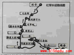 13. 标长征路线——小组讨论将⑤⑥段描述的战斗命名为“夜袭皎平渡”,并标注到“红军长征路线图”中,你认为应标注在ABCD 的哪一处?(2分)