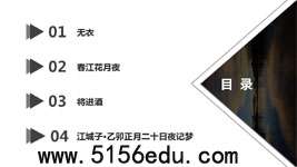 标题: 《无衣》《春江花月夜》《将进酒》《江城子·乙卯正月二十日夜记梦》ppt课件