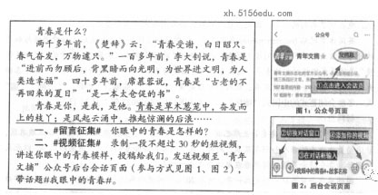 5、“青年文摘”微信公众号在“五四”青年节到来之际,拟举行一次有关“青春”话题的征集活动。请阅读以下材料,根据要求参与活动。(8分)